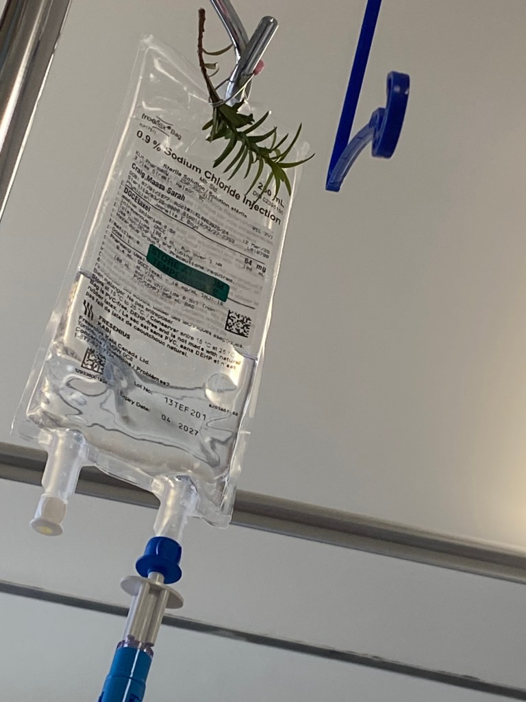 Through monthly visits over the year, surrounded by genuine, caring nurses I came to know by name, the act of returning again and again to that green vinyl chair transmuted what I had once perceived as a hell space into a place of unexpected communion. I bless my liquid medicine bags with my willingness to let it be just that. I learned how to receive love from the most unexpected of places and also how to share it — through quiet conversation, a warm smile, or shared understanding with others finding their own way back toward wholeness. It no longer represented an electric chair, but a throne I sat on willingly.